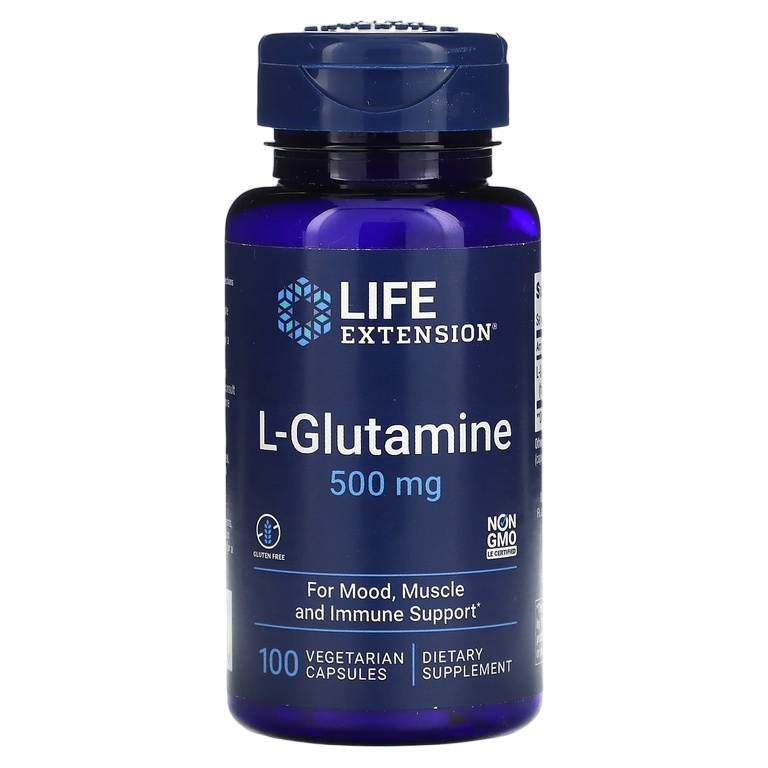 Life Extension L-Glutamine 500 mg, 100 вегетарианских капсул — Глютамин