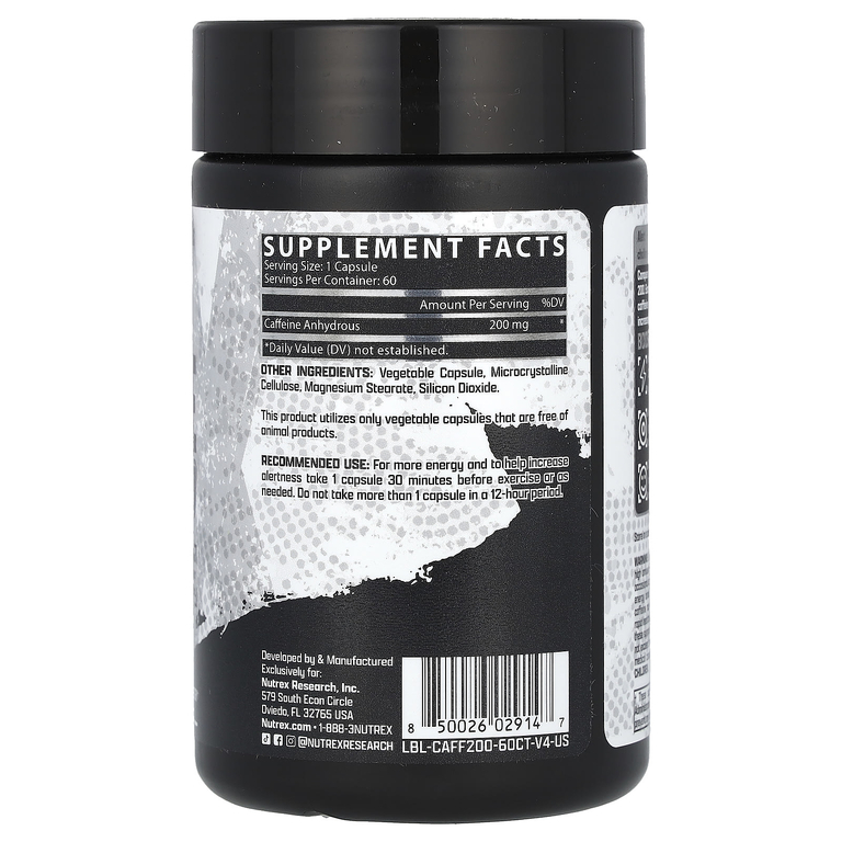 Nutrex Research Caffeine — это высокоэффективная добавка с 200 мг безводного кофеина в одной растительной капсуле. Формула предназначена для быстрого повышения энергии, умственной ясности, концентрации и физической выносливости. Подходит как для спортивных целей (до тренировки), так и для поддержания бодрости в течение дня при умственных или эмоциональных нагрузках.
