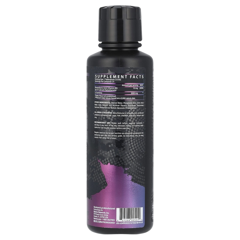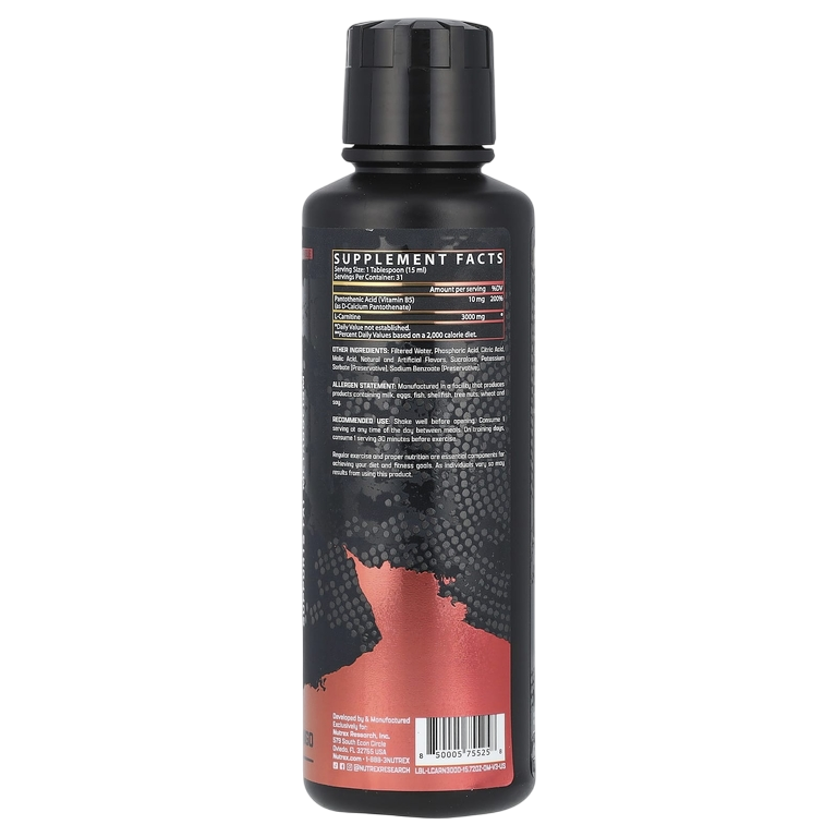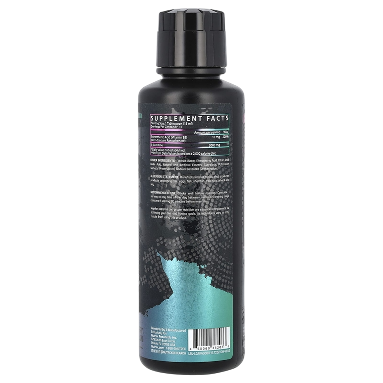 Nutrex Research L-Carnitine 3000 — это высокоэффективная жидкостная форма L-карнитина, в которой каждая порция (1 столовая ложка) содержит 3000 мг чистого L-карнитина — максимальная доза в удобной жидкой форме. Добавка разработана для поддержки жиросжигания, повышения энергетического обмена и улучшения выносливости во время тренировок. В состав также входит витамин B5 (пантотеновая кислота) — важный компонент, участвующий в синтезе и функции L-карнитина. Благодаря быстрому усвоению жидкой формы, активные вещества быстро попадают в кровоток, обеспечивая выраженный эффект.