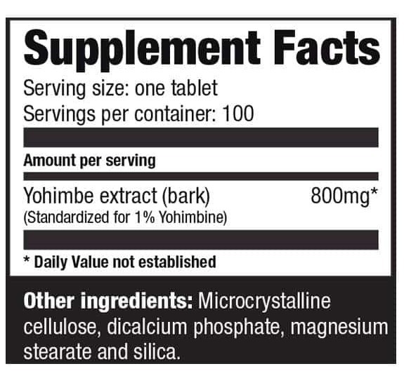 — Содержит 800 мг стандартизированного экстракта коры йохимбе (1% йохимбин)