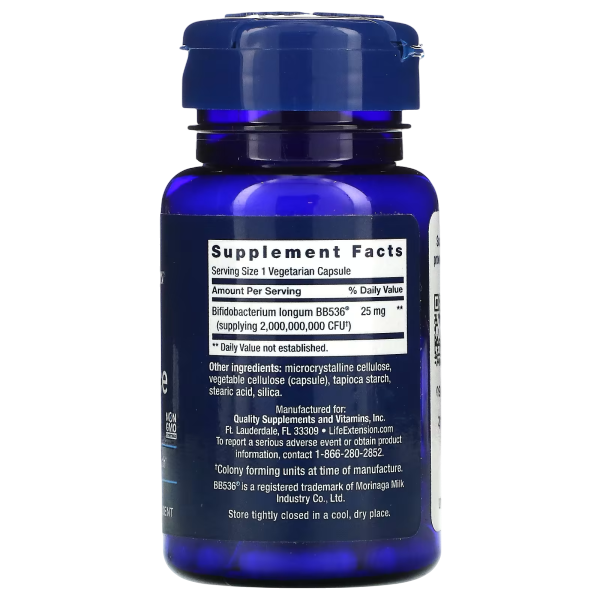 Life Extension Bifido GI Balance — это высококачественный пробиотический комплекс на основе штамма Bifidobacterium longum BB536®, одного из наиболее изученных и эффективных штаммов бифидобактерий. Каждая капсула содержит 2 миллиарда жизнеспособных колониеобразующих единиц (КОЕ) полезных бактерий, выделенных из человеческой кишечной микрофлоры. Препарат разработан для поддержания здорового баланса микробиоты кишечника, улучшения пищеварения и укрепления иммунной защиты. Штамм BB536® обладает высокой устойчивостью к желудочному соку и хорошо приживается в толстом кишечнике, обеспечивая стабильный терапевтический эффект.