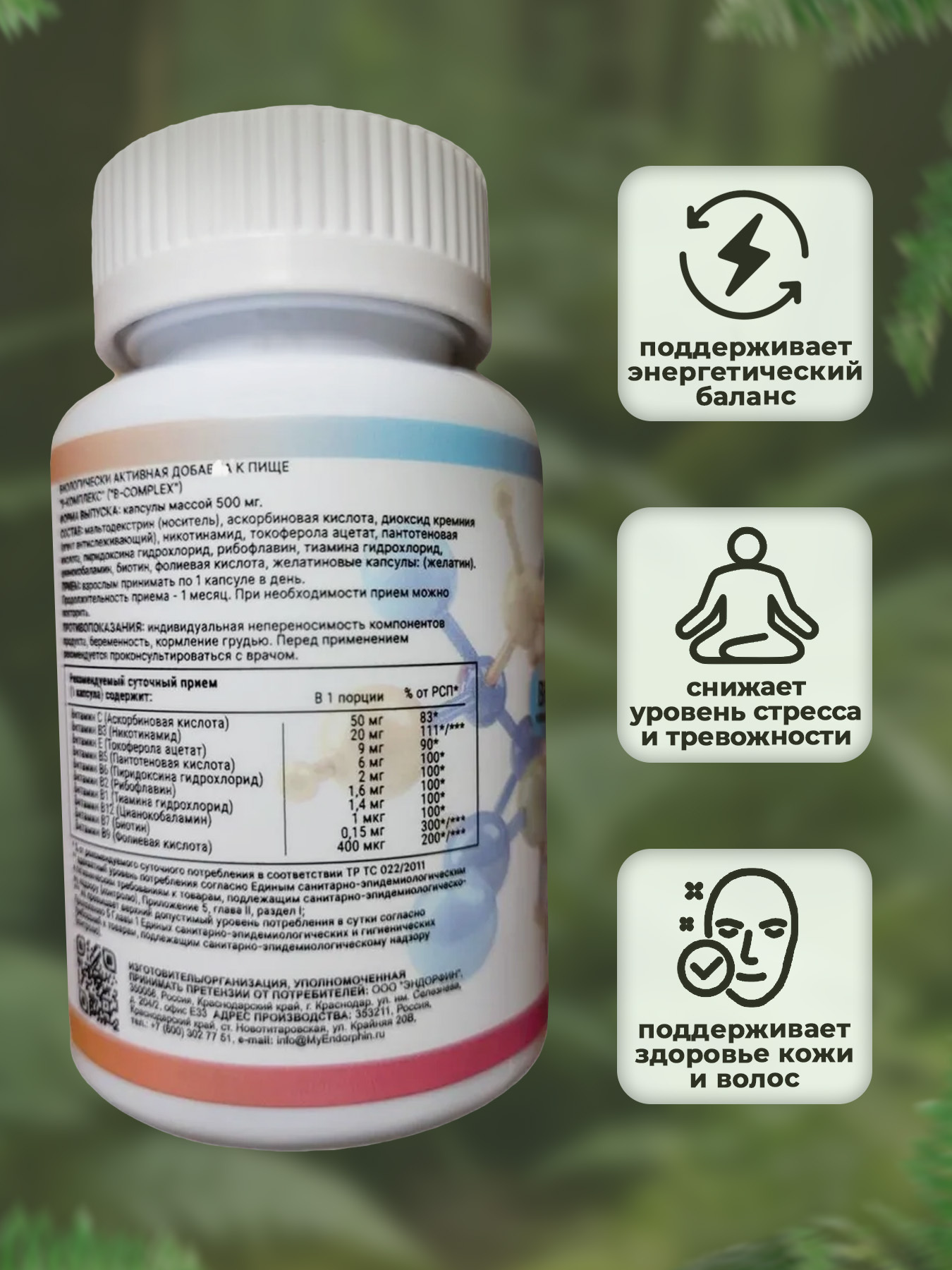 Витамины группы B являются кофакторами в сотнях биохимических реакций, особенно связанных с превращением пищи в энергию. Они участвуют в синтезе ДНК, выработке гормонов, передаче нервных импульсов и детоксикации. Недостаток этих витаминов приводит к усталости, раздражительности, анемии и снижению концентрации. Комплекс с витаминами С и Е обеспечивает дополнительную защиту клеток и усиливает общее оздоровительное действие.
