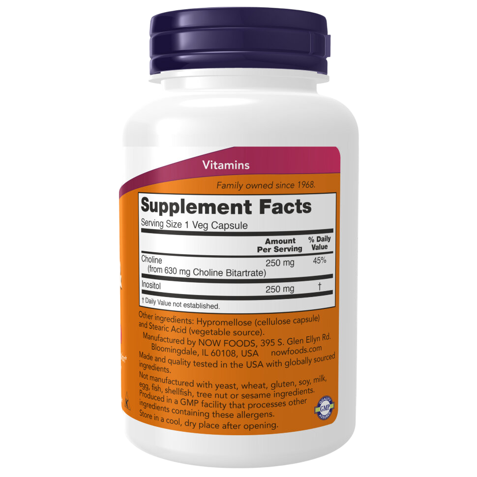 Now Foods Choline & Inositol, 100 вегетарианских капсул — Холин и Инозитол