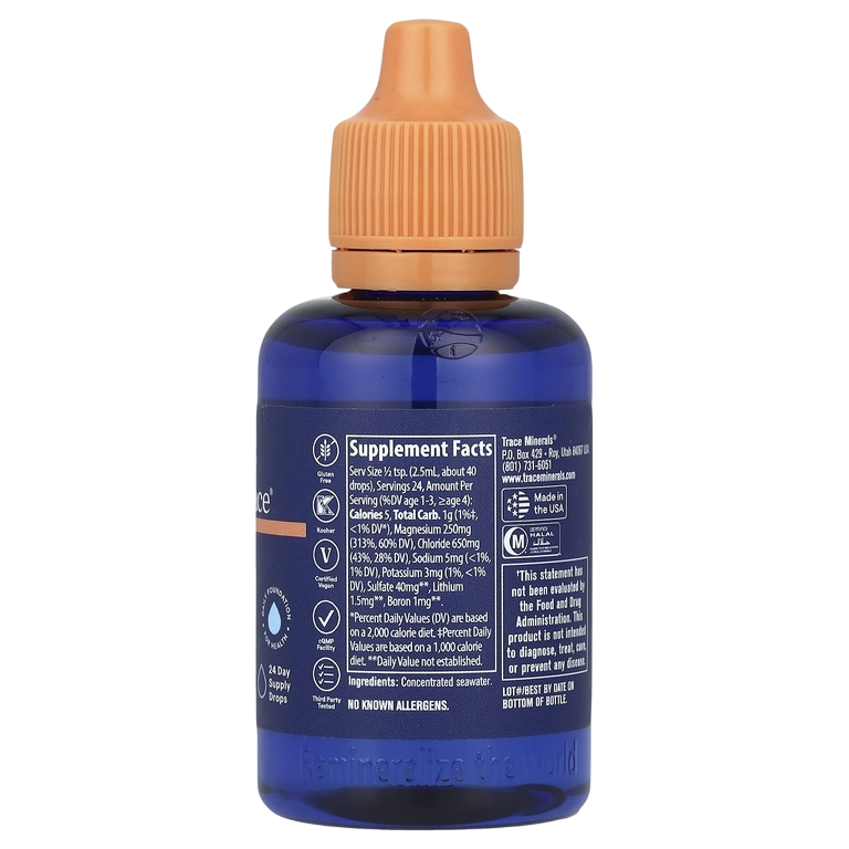 Trace Minerals ConcenTrace® — уникальный жидкий минеральный комплекс, полученный из вод Великого Соленого озера (Юта, США) с применением запатентованной технологии ConcenFlo™. Этот процесс сохраняет природное соотношение 70+ ионных микроэлементов в биодоступной форме, идентичной электролитам человеческого организма. Концентрат не содержит синтетических добавок, подходит для веганов и используется спортсменами, диетологами и нутрициологами для коррекции минерального баланса.
